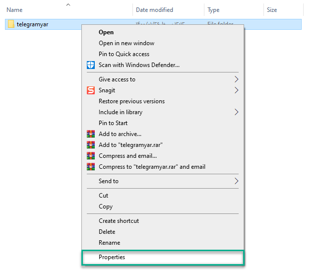 بر روی پوشه ساخته شده راست کلیک نموده و Properties را انتخاب کنید.