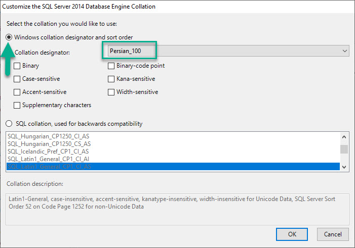 قبل از زدن کلید Next دقت نمایید که همانند تصویر زیر در این کادر زبان فارسی (Persian_100_CI_AI) درج شده باشد.